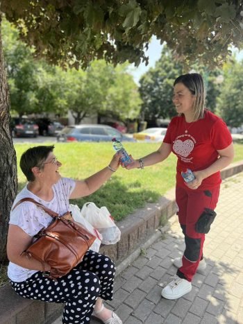 Во рамките на теренските активности, 15 обучени волонтери на територија на град Скопје со 3 возила на Црвениот ќе бидат на терен и ќе патролираат на најфекфентните локации во градот (автобуски постојки, амбуланти, пазари…) во работните денови 13-14 јули, 17-18 јули. Обучените волонтери ќе дистрибуираат информативни материјали/флаери со совети за заштита од топлотен бран, ќе поделат шишиња вода, по потреба ќе вршат мерење на крвниот притисок, а во интервентни случаи тимовите ќе вршат транспорт до најблиската здравствена установа, или пак до домот на лицето кое има потреба од терапија во домашни услови.