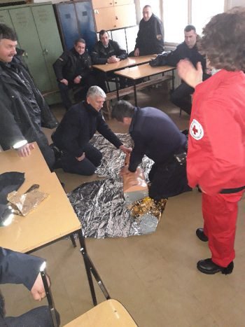 Едукација ”Студен бран – смрзнатини, хипотермија и компликации од истите / безсознаниеи престанок на витални функции”се одржа за потребите на граничната полиција на граничниот премин Крива Паланка и Пелинце. Истата се изведе на 14 февруари 2019год и вкупно ја следеа 18 присутни. Темите беа фокусирани на прва помош и само-помош при смрзнатини, хипотермија и компликации кои може да настанат од истите (безсознание и престанок на витални знаци). Целиот материјал беше презентиран интерактивно и практично со симулација на повредени. На присутните им беа поделени флаери за студен бран на македонски и албански јазик и прирачник за прва помош на работното место.