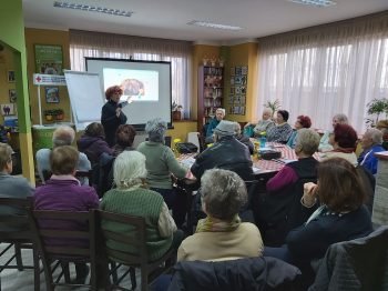 Во рамките на проектот „Дневен центар за стари лица и центар за давање помош во домашни услови” при ЦКГС во дневниот центар за стари лица во ДХО Даре Џамбаз на 21.02.2020г. се реализираше предавање на тема „Интелигентно стареење” со Дафина Николовска. Целта на ова предавање е да се поттикне свеста на лицата во трето доба за активно и здраво стареење. Предавањето ќе се имплементира два пати месечно во Дневниот центар за стари лица.