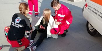 Пред платото на Сити мал , волонтерите на Црвениот крст на град Скопје и СВР Скопје симулира укажување на прва помош на повредени деца при експлозија на пиротехнички средства во рамки на кампања „Среќна и безбедна 2019 година – петардите не се играчки“.