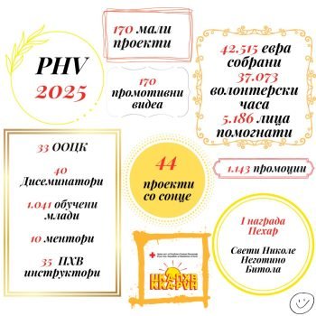 Преку ПХВ програмата, по спроведената унифицирана обука, младите добиваат можност здружени да истражуваат и реализираа мали проекти за добробит на заедницата. Оваа година се реализирани 170 мали проекти од страна на 1.041 младинец, водени од 40 дисеминатори и 10 ментори, а поддржани од системот на 33 Општински Организации на Црвениот крст низ државата.
