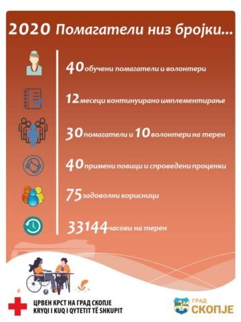 Социјалниот сервис „Помагатели на ранливи целни групи на корисници“ при Црвен крст на град Скопје со поддршка од Град Скопје, на почетокот од новата, ги сумира постигнатите резултати за 2020 година. Година исполнета со 75 задоволни корисници од испорачаната услуга од страна на помагателите и волонтерите.