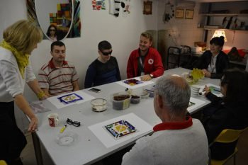 Во рамките на Центарот за поддршка на лица со оштетен вид на крајот на месецот, беше реализирана работилница за изработка на витраж која е специјално адаптирана на потребите на лицата со оштетен вид. На работилницата присуствуваа 4 корисници кои сами изработија уметнички дела, со помош на вработените во студиото и претставниците на Црвен крст на град Скопје. Работилницата беше посетена од страна на делегатот и соработниците од УЈИЕ преку која, корисниците ги искажаа своите размислувања и погледи кон уметноста, конкретно кон оваа техника.