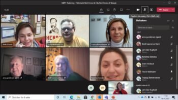 Црвен крст на град Скопје од 2017 година е во твининг програмата со Црвен крст Телемарк од Норвешка. Соработка донесе поинаква перспектива за начинот на кој две организации во рамките на Црвен крст може да соработуваат. Меморандумот за соработка беше потпишан за одреден временски период, со годишно планирање на активности, поставување на главна цел која се реализира преку годишни цели. Во првите 3 години од соработката, многу волонтери и професионалци од двете земји имаа можност да бидат дел од програмата, да патуваат во Норвешка или да дојдат во Македонија, да разменат искуство и да стекнат нови вештини. За жал заради светската пандемија со Корона-19 и оваа програма беше реорганизирана. Во 2020 година се организираа неколку онлајн средби со цел меѓусебна поддршка за полесно надминување на состојбите како и размена на искуства за поголемо ублажување на последиците за населението. На 08 февруари се одржа уште една онлајн работилница на која беа презентирирани искуствата од целата Твининг програма пред преставник на Норвешки Црвен крст со цел изнаоѓање на заеднички решенија за продолжување на соработката.