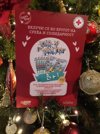 Државна Лотарија и Црвен крст стартуваат заедничка хуманитарна акција за поддршка на ранливи категории во борба против Ковид-19. Во пресрет на престојните новогодишни празници, подарете инстант лозови „Еко скутер” во пакет „Среќа плус” и вклучете се во кругот на среќа и солидарност. Во зимскиот период за борба со Ковид-19 на најнемоќните им се потребни витамини и суплементи, за што ќе се наменат 10% од средствата собрани од оваа акција.