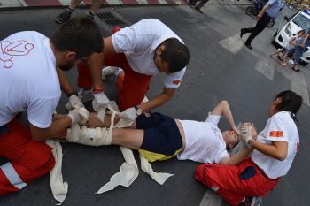 По повод Светскиот ден по Прва помош (8 септември) Црвен крст на град Скопје организираше симулациска показна вежба-сообраќајна несреќа. Вежбата се реализираше на 11 септември 2018 (вторник) во 12:00 часот во централното градско подрачје ( на Рекорд ). Истата се организираше во соработка со МВР – СВР Скопје, а учество земаа сите Општински организации на ниво на град Скопје, стручната служба на Црвен крст на град Скопје, 30 волонтери од Тимот за одговор при катастрофи како и Мобилни тимови на Црвен крст. Се симулираше сообраќајна несреќа, во која учествуваа две возила и велосипед и во која 6 лица беа повредени.