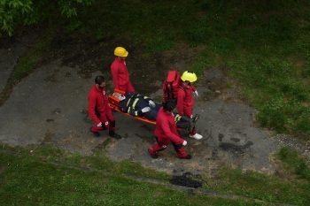 Црвениот крст на град Скопје зеде учество на вежбата со два тима кои вршеа евакуација, тријажа и транспорт на повредените лица.