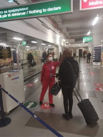 Бојка, Тамара, Амар, Диме и Снеже, долгогодишни волонтери од Црвен крст на град Скопје веќе 3 месеци дел од своето време го поминуваат на Меѓународниот аеродром Скопје. Задолжени се за мерење на температура на патници при влез во нашата земја. Се менуваат во смени, имаат распоред кога пристигнуваат авионите и секогаш некој од нив е на работната позиција. Некогаш пристигнуваат преку ден, но некогаш и во ноќни саати, зависно од самиот лет. Облечени во препознатливие униформи на Црвениот крст, со насмевка на лицето, ги пречекуваат патниците и им мерат температура. Велат дека граѓаните се веќе навиканти на овие процедури и соработуваат со нив. Тие се во редовна комуникација со медицинската екипа на Аеродромот доколку има потреба за понатамошно спроведување на лица со сомнеж на Ковид19.