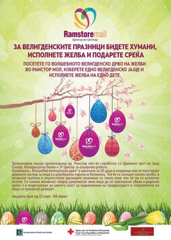 Црвен крст на град Скопје во соработка со Рамстор мол и оваа година го организираат настанот Волшебно велигденско дрво за корисниците од дневниот центар за лица со посебни потреби Капиштец. Тие заедно со волонтерите од Црвен крст ги запишаа желбите кои се закачени на дрвото кое е поставено на влезот на трговскиот Рамстор мол. Сите хумани граѓани и општестено одговорни компании имаат можност да одберат некој од лампионите во форма на јајце и да допринесат за среќата на овие лица. Активноста е во рамките на проектот за поддршка и социјализација на деца и младинци со посебни потреби поддржан од а.д Комерцијална банка, каде Црвен крст на град Скопје 9 година по ред реализира различни активности со цел олеснување на животот и потребите на овие лица и нивна полесна интеграција во општеството.
